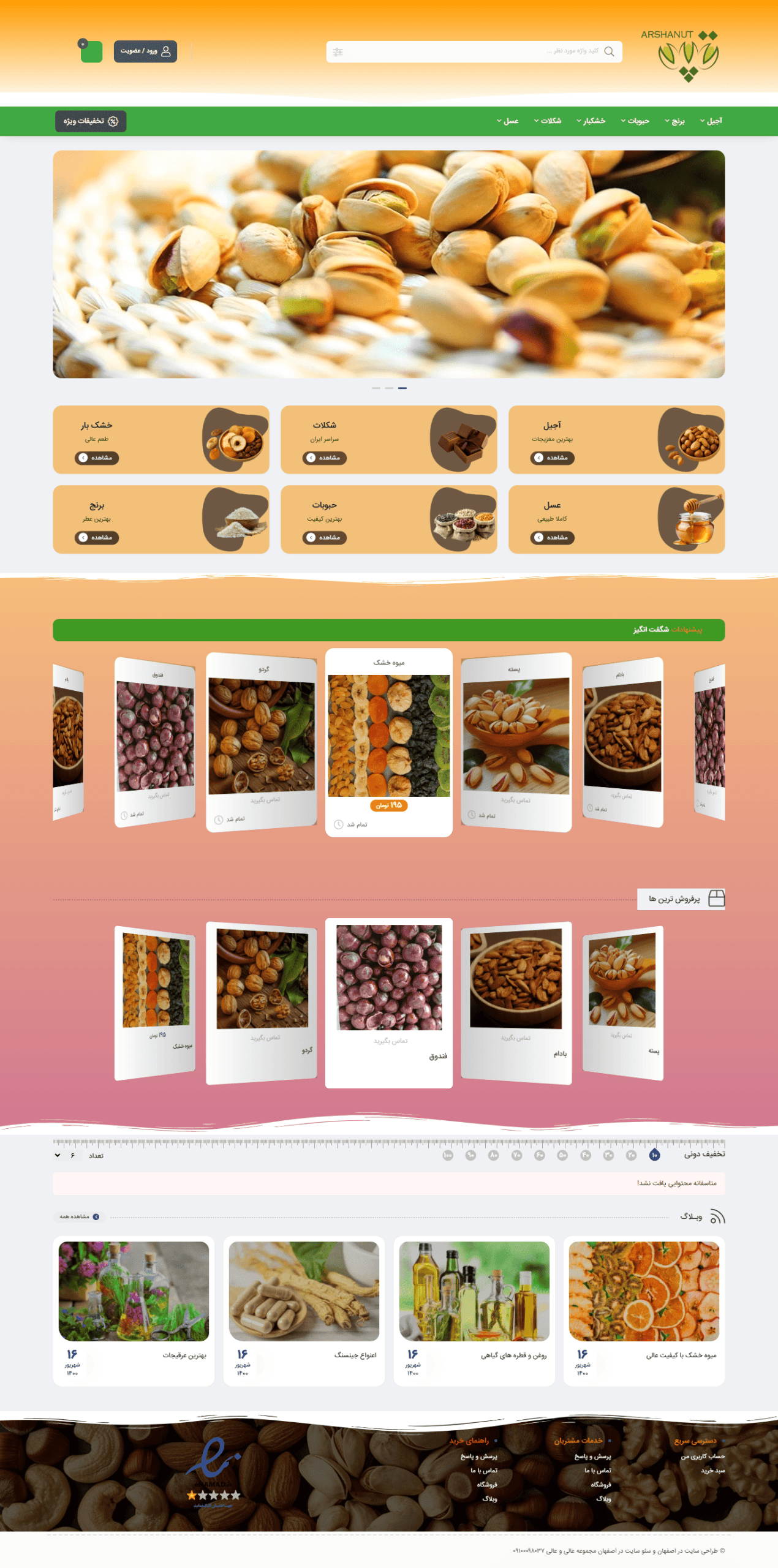 فروشگاه ارشانات با تمرکز بر عرضهی مستقیم و باکیفیت خشکبار، از جمله آجیل تازه، انواع میوه خشک، خرما، مغزها و دانههای مغذی، فعالیت خود را با هدف تأمین نیاز مشتریان به تغذیه سالم و محصولات طبیعی آغاز کرد. با گسترش روزافزون تقاضای بازار و تغییر الگوهای خرید مشتریان به سمت فضای دیجیتال، مدیر فروشگاه ارشانات تصمیم به ایجاد بستری آنلاین برای معرفی و فروش محصولات خود گرفت. در همین راستا، طی جلسهای با جناب آقای علیرضا براتی در اصفهان، قراردادی جهت طراحی یک وبسایت فروشگاهی اختصاصی به امضا رسید. این همکاری با هدف نمایش بهتر کیفیت محصولات، تسهیل فرآیند خرید آنلاین و ارائه اطلاعات تغذیهای درباره خشکبار صورت گرفت. تیم طراحی سایت در اصفهان ، پس از تحلیل نیازهای فروشگاه ارشانات، سایتی را طراحی کرد که ضمن حفظ هویت بصری سنتی و اصیل خشکبار ایرانی، تجربهای مدرن و راحت را برای کاربران رقم بزند. علاوه بر طراحی، خدماتی مانند سئو ارگانیک برای جذب مشتری از طریق گوگل، سئو تصاویر (سئو سوئفیت)، طراحی کاتالوگ دیجیتال محصولات فصلی، و طراحی لوگوی اختصاصی با الهام از المانهای ایرانی نیز ارائه شد. این مجموعه اقدامات باعث شد فروشگاه ارشانات نهتنها به فروش بیشتر در سطح کشور دست یابد، بلکه به عنوان یک برند معتبر در بازار خشکبار شناخته شود. اکنون مشتریان میتوانند تنها با چند کلیک، تازهترین خشکبار را درب منزل تحویل بگیرند و از کیفیت تضمینی محصولات ارشانات لذت ببرند. با راهاندازی وبسایت اختصاصی، فروشگاه ارشانات توانسته است دامنهی خدمات خود را به فراتر از مرزهای فیزیکی گسترش دهد و با جذب مشتریان جدید از سراسر کشور، جایگاه خود را در بازار رقابتی خشکبار تثبیت کند. وبسایت بهصورت هوشمندانه دستهبندی محصولات را انجام داده تا مشتریان بهراحتی به آجیل شب یلدا، آجیل عید نوروز، میوههای خشک ارگانیک و سایر محصولات دسترسی داشته باشند. همچنین قابلیت ثبت سفارش آنلاین، پرداخت امن و ارسال سریع به تمام نقاط ایران، تجربه خرید را برای کاربران بسیار ساده و لذتبخش کرده است. ارشانات امروز تنها یک فروشگاه نیست، بلکه یک برند دیجیتال موفق در صنعت خشکبار کشور به شمار میرود.